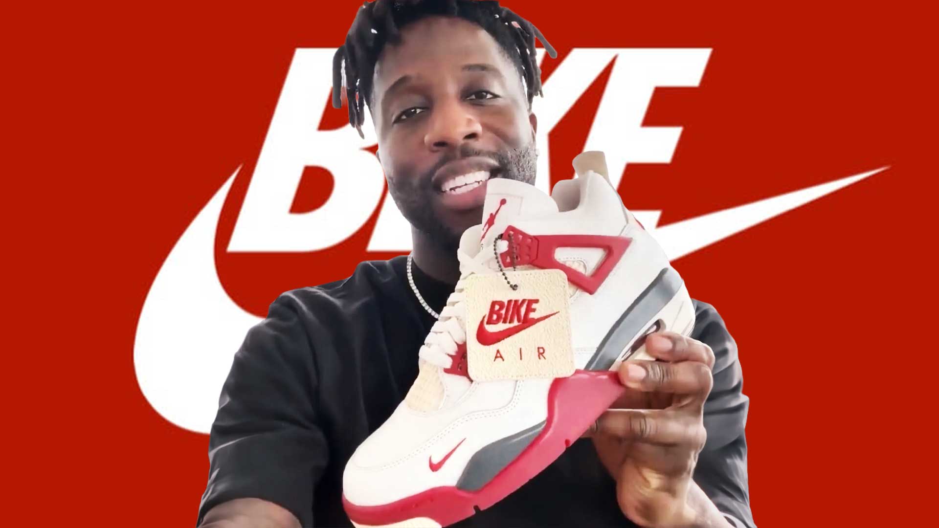 One of the most exciting details on Sylvester’s previous drops was the inclusion of his “Bike Air” branding on the heel of the sneakers. That returns here. It replaces the traditional Nike Air or Jumpman logo you’d normally expect to see on an Air Jordan 4.